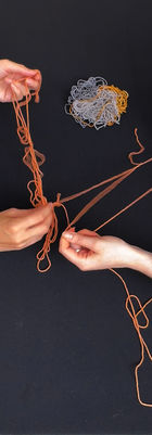 The title to Life's thread is borrowed from Cecilia Vicuña's poem A Ritual response, whose lines became a choreographic proposition that guided this work. This collaborative work is open-ended, with our ideas and threads producing various materials. As an evolving project, these materials remain open to different modulations within our future installation.